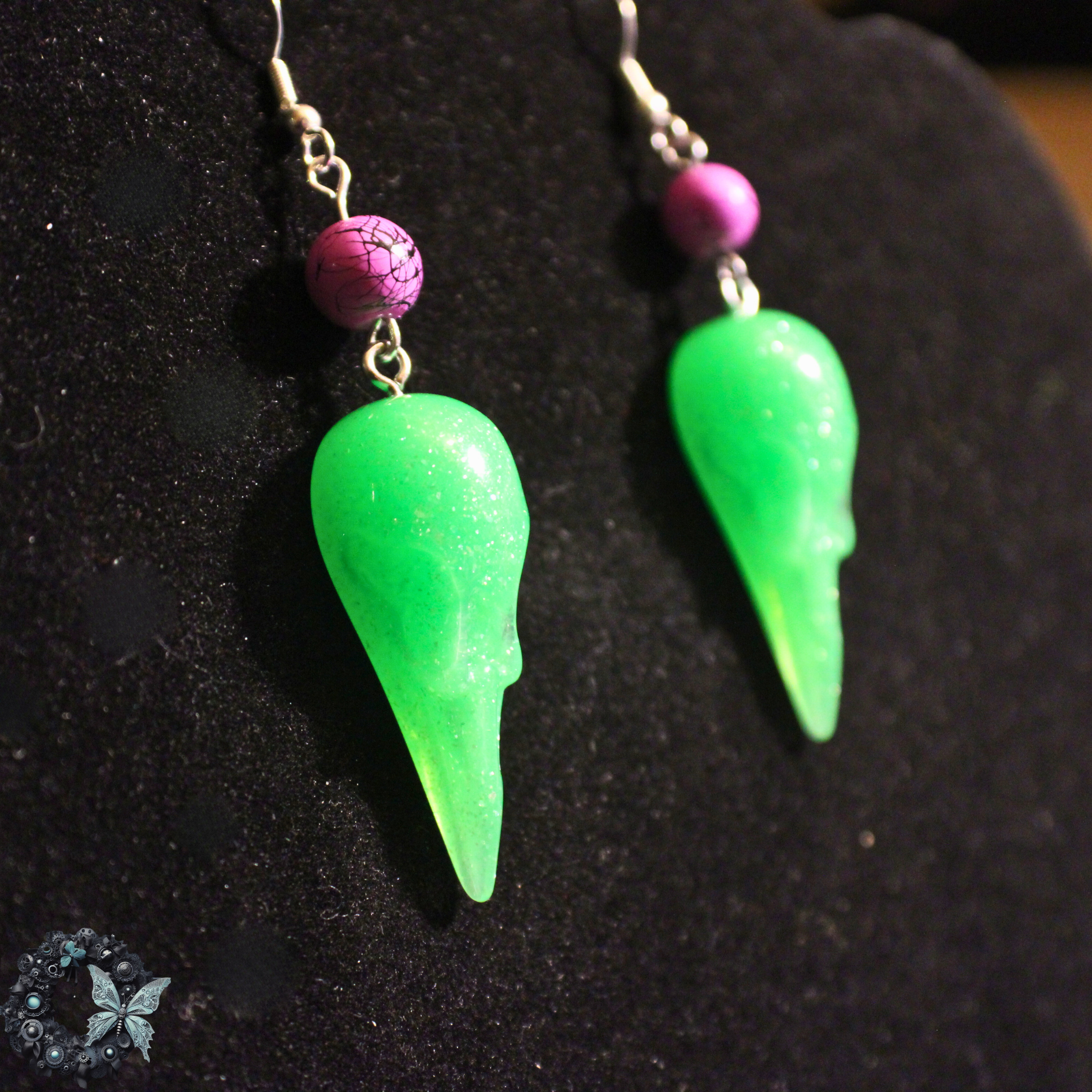 Slime Siren – Neon green skulls + fuchsia beads