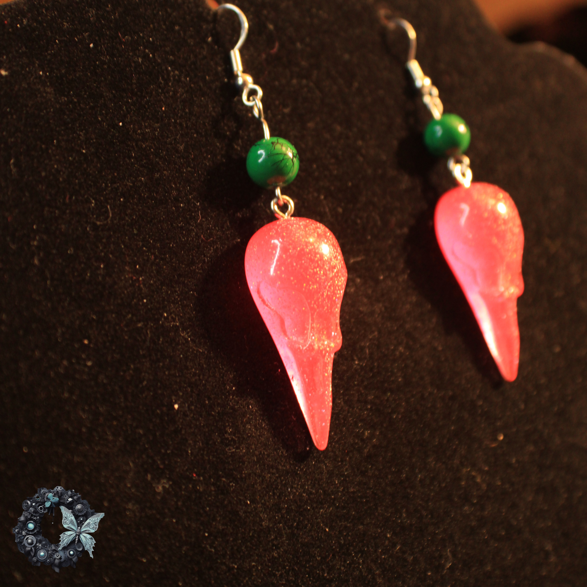 Southwest Hex – Chili pepper red skulls + deep green beads
